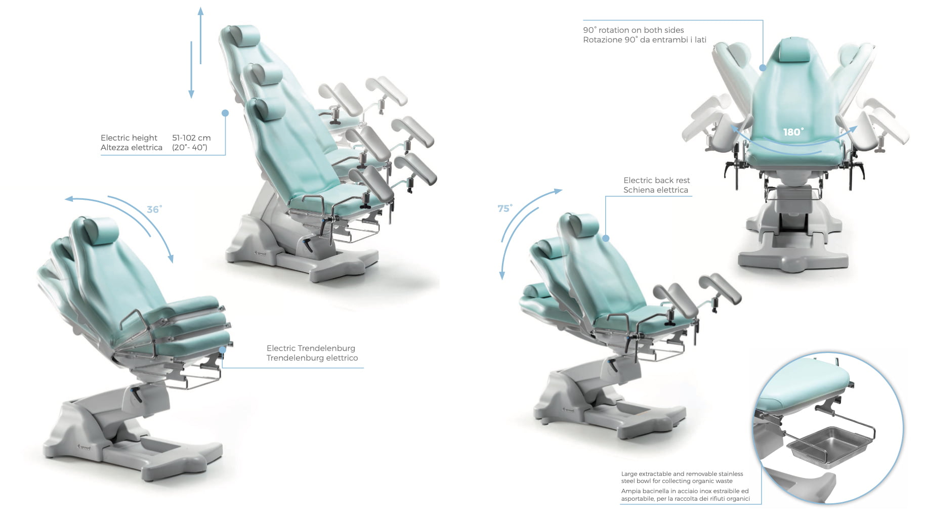 Bàn khám sản phụ khoa cao cấp – Model: Gyno Plus – Hãng: Lemi – Xuất xứ: Ý