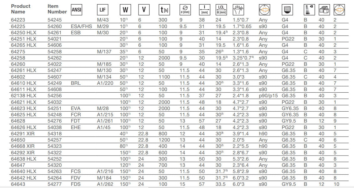 7 | BÓNG ĐÈN OSRAM 64435 | Công suất: 20W Điện áp: 24V Nhiệt độ màu: 2800K Tuổi thọ: 2000h |