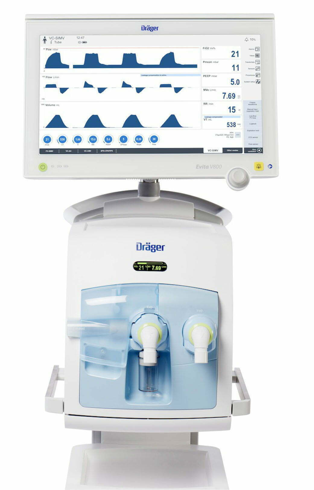 Máy thở Drage Evita® V800 kết hợp thông khí hiệu suất cao với thiết kế thẩm mỹ cho phép vận hành hiệu quả và nhanh chóng. Từ thời điểm bắt đầu áp dụng thông khí bảo vệ phổi cho đến lúc được tích hợp với khu vực chăm sóc tích cực lấy bệnh nhân làm trung tâm.